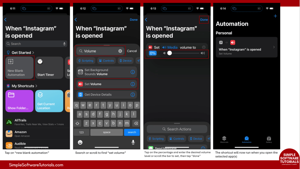 In this video, I walk you through how to use an Apple Shortcut to set the volume to 0 when opening apps you specify. This is helpful to ensure your phone volume is low or off when opening an app that could potentially be loud.
